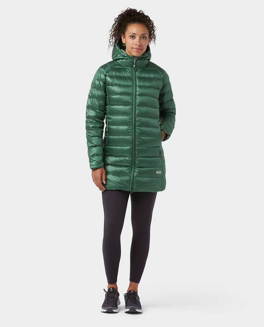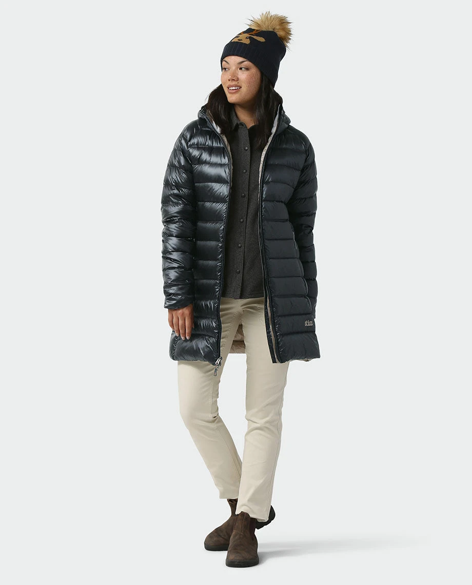 Sister to our ever-popular Hometown Down Jacket, the Parka wraps you in 800-fill goose down that is incredibly warm, lightweight and water repellent, thanks to the latest innovation in insulation technology from our partners at Allied Featherâ˘. The mid-thigh length and narrow baffle provide extra warmth and a touch of city style whether you are winter stargazing, walking the dog or gearing up for a day on the hill. Our silky Illume Cire⢠fabric adds an elegant sheen to the exterior and a DWR finish sheds the elements. Fully featured with an adjustable fixed hood, handwarmer pockets, and an interior security pocket.